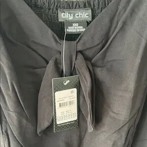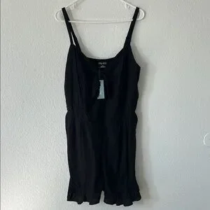 Elegant black romper with a front tie and pockets. Ideal for versatile styling.