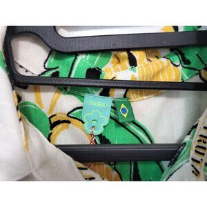 Bright & colorful Farm Rio shirt perfect for the rest of the summer. With its lightweight viscose cotton blend, you are sure to not only feel cool, but look cool too. All-over graphic print of pineapples, lemons & bananas. If you've got a cruise or beach vacation still to come, hurry & grab this hard-to-find shirt.