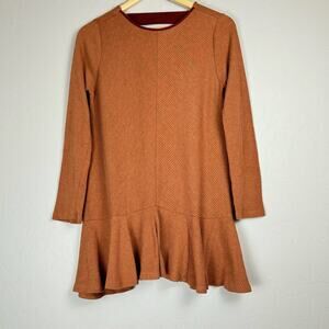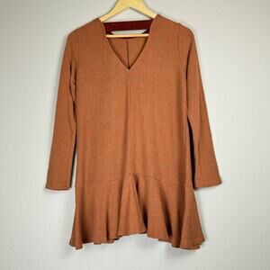 THML Anthro Women's Small Burnt Orange Soft Flowy Long Sleeve Sweater Ruffle