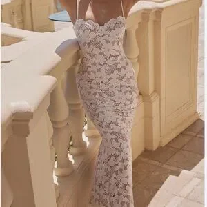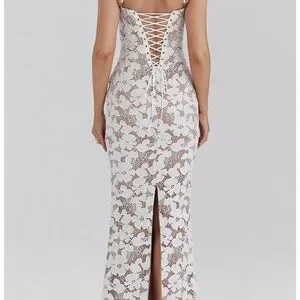 House of CB White Pearl Floral Lace Gown Maxi Dress