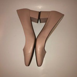 The perfect blush pink color to act as a neutral and solid comfort with the block heel and rubber sole.