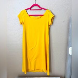 Elegant, sleek, stylish short-sleeved yellow Eileen Fisher dress. Excellent condition, capsule wardrobe. Enjoy a comfortable fit with a vibrant look