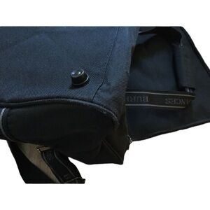 This one has a single large top entry compartment and a single outside zippered pocket. All zippers are signature Burberry Frangrancrs. Handles and shoulder strap spell out as well.