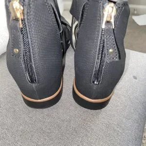 Elegant black wedges with crisscross straps. Comfortable and stylish for any outing.