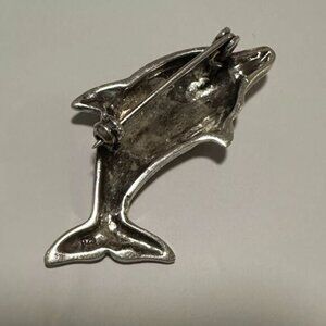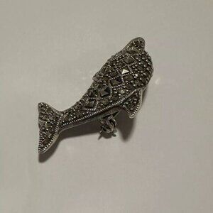 Sterling Silver Marcasite Dolphin Brooch Pin 1 7/8 Inch