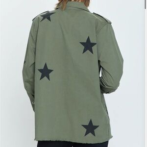 This military style jacket will become the star of all of your future looks. In a true boyfriend inspired fit, it is oversized with printed black graphics and a button up front. Wear all year round, alternating between denim shorts and vegan leather pants. Pro tip: Size down if you're looking for a more fitted jacket.