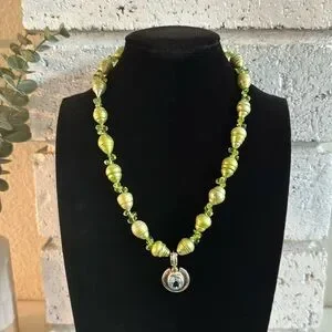 NWOT Green Freshwater Pearl Necklace with 925 Peridot and Glass Pendant