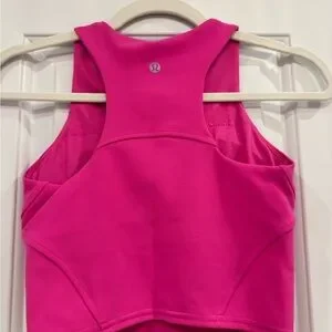 Lululemon Invigorate Train Tank in Sonic Pink. Size 2. It has a built in bra with removable padding. Worn a few times, but in very good condition. And it is a gorgeous color!