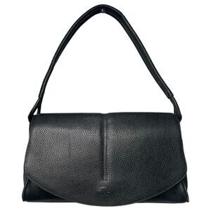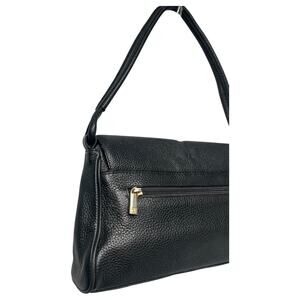 VTG Terre De Feu Shoulder Bag Womens Black Pebbled Leather Flap Top Purse Retro