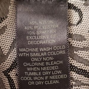 WHBM corset tank top has a swirling baroque black and gray textured pattern with low key luster. Square neckline with piping. Vertical seams for a flattering silhouette. Pullover stretch fabric.