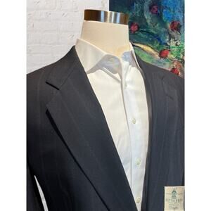 Vintage Austin Reed Suit 44L 38x29.5 Navy Blue Royal Banker's Stripe Virgin Wool