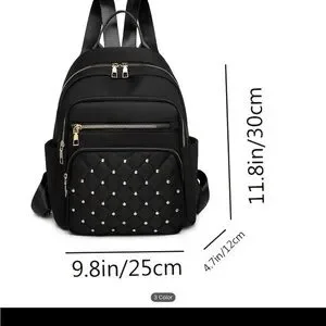 Stylish taupe nylon backpack with beading and a quilted design. Perfect for everyday use.