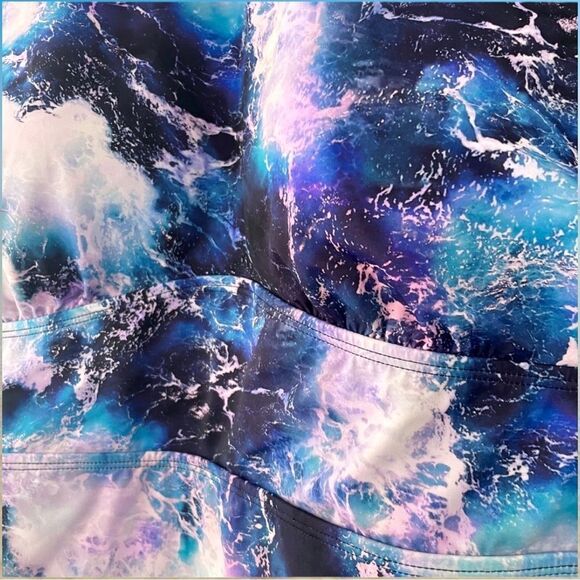 Torrid Blue Ocean Waves Active Wireless Scoop Back One Piece Swimsuit NEW