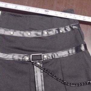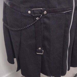 Elevate your wardrobe with this chic black mini skirt, featuring stylish chain details. Perfect for a bold, modern look.