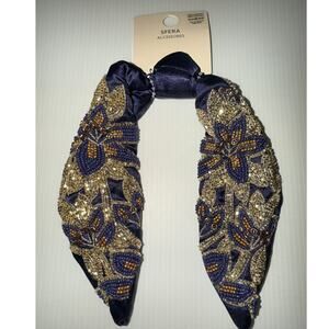 Elevate any outfit with this stunning navy blue headband, beautifully adorned with intricate gold, bronze, and navy seed bead floral embroidery. Perfect for weddings, parties, holidays, or adding a touch of elegance to your everyday style. Handmade look with a comfortable fit for all-day wear.