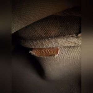 louis vuitton bag only, no leather strap. used and has signs of wear. marks inside. this is the vintage canvas that lasts forever. no tears, holes or cracks. canvas has some light fraying on one end, nothing major (see photos). hardware has fading and wear as the gold rubbed off. the zipper shows wear as well. you can purchase the strap separately used or buy one new from Louis Vuitton. please view and enlarge