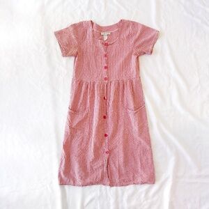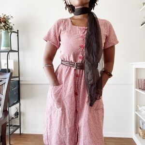 ☆ vintage red and white gingham seersucker button up midi dress ☆
