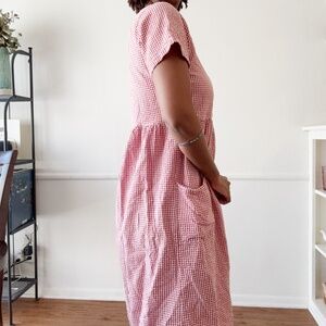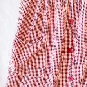 vintage red and white gingham seersucker button up midi dress