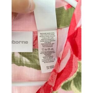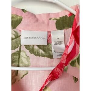 Liz Claiborne Linen Shirt Floral Pink Roses Cottagecore Romantic Button Up L 14