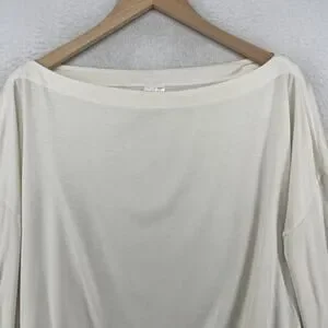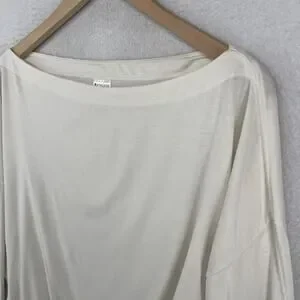 ATHLETA Top M Oversized Cropped Boat Neck Long Sleeve Cinched Off White