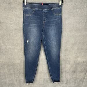 Spanx Jeans Womens Extra Large Blue Pullon Stretch Skinny Ankle Raw Hem Slimming