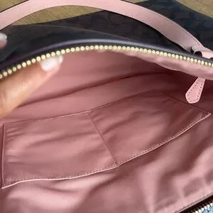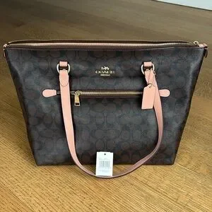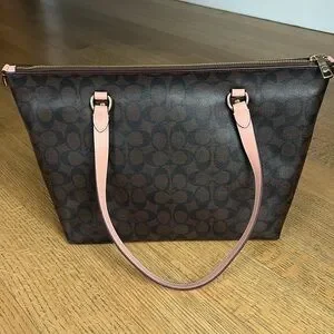 Brand new with tags. Brown pattern, pink handles, and gold-tone accents. Perfect for everyday use.