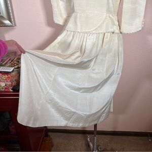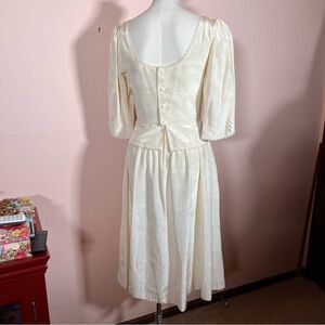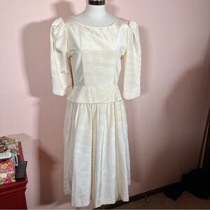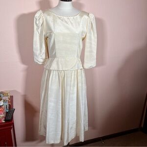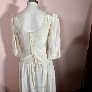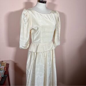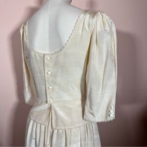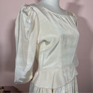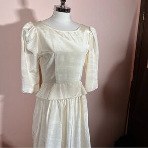 Vintage 80 90 Lanz Cream White Satin Puff sleeve Peplum Victorian Dress wedding