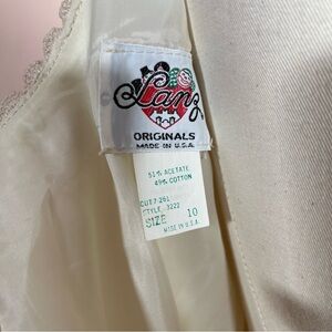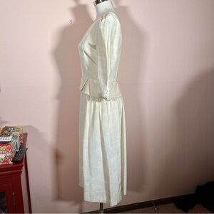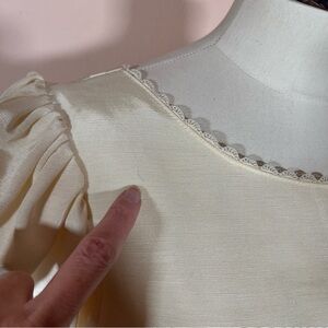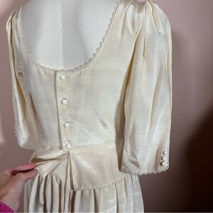 Vintage 80 90 Lanz Cream White Satin Puff sleeve Peplum Victorian Dress