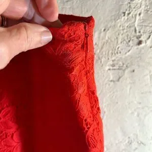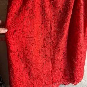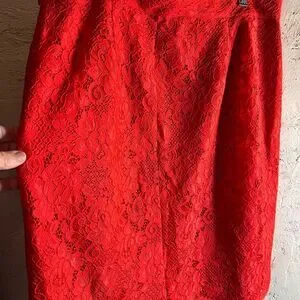This stunning red midi skirt by CeCe showcases a chic pencil silhouette that flatters the figure. Crafted from a lightweight textured fabric, it offers a stylish and comfortable option for cocktail events and nights out. Lovely fringe hem detail