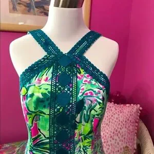 Straight Fit Stretch Shift With Cut-In Neckline And Pop Color Lilly Lace Trim.