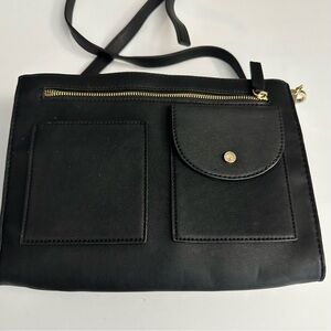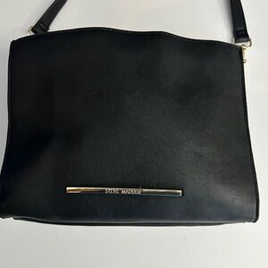 Chic black crossbody bag by Steve Madden. Features a sleek gold accent. Perfect for versatile styling. Great condition, one small flaw on bottom, see pic