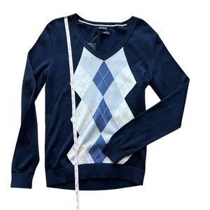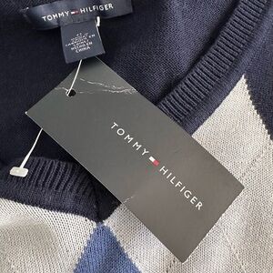 Tommy Hilfiger Women’s Navy Blue V-Neck Argyle Sweater Size M NWT
