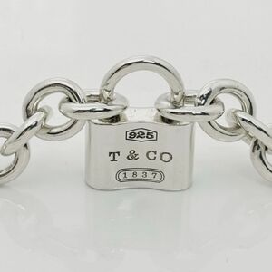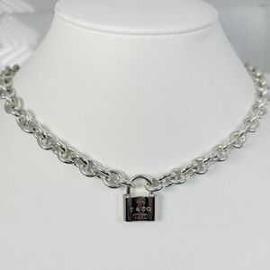 Tiffany & Co. 1837 Padlock Rolo Chain Chocker Necklace Sterling Silver 925