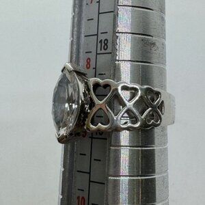 Sterling Silver Diamonique Ring size 9 Cut Out Heart Sides Marquis Cut .925 CZ