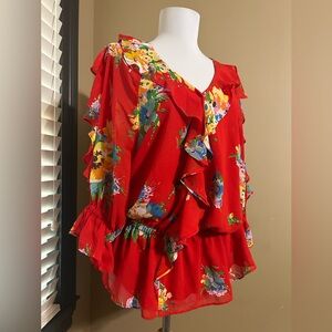 Lauren Ralph Lauren Red Floral Ruffle Blouse