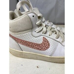 Elevate your style with these Nike Court Borough sneakers! These mid-top athletic shoes come in a beautiful animal print pattern with a lace-up closure. The white and pink colors create a striking contrast, making them perfect for any activewear occasion.