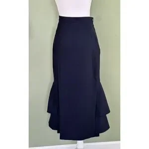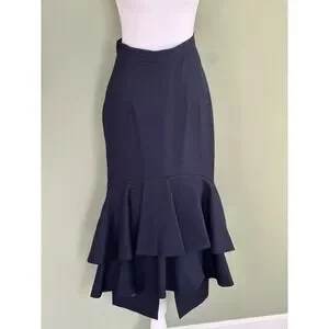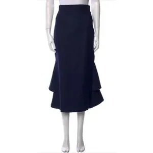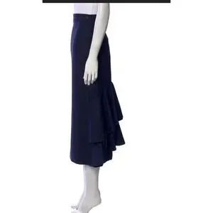 Lake Studio Skirt Midi Ruffle 100% Wool Navy Blue Classic Luxury Sz 42 US 6, M