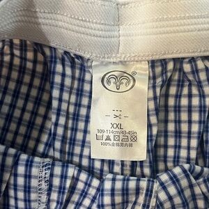 Stylish blue and white checkered shorts with a comfortable fit. Features a drawstring waist.