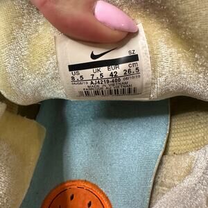 This shoe features both the upper of the Air Max 97 and the sole unit of the Air Max 1, a killer combo. The shoe also has a unique colorful corduroy upper with frayed edges, a truly one-of-a-kind look, with velour from toe to heel.