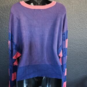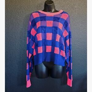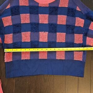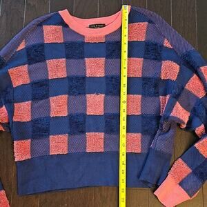 RAG & BONE S Blue Coral Ridley Pullover Sweater Crew Check Print