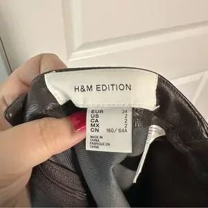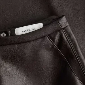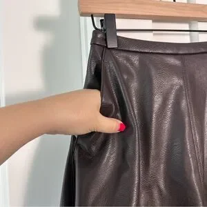 H&M Edition (2) Chocolate Brown Coated Leather Look Skirt- A Line Midi Length