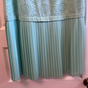 Elegant mint green dress by LOFT. Perfect for any occasion. Beautiful design with the lace look on top and the pleated skirt on bottom. Gives it a flapper style