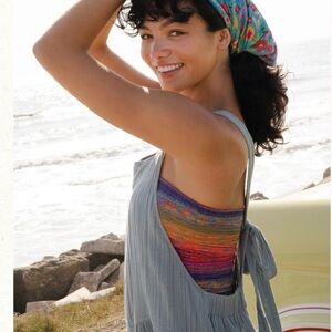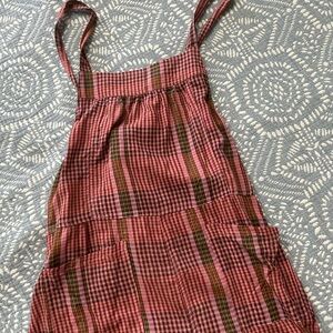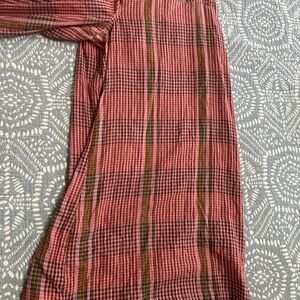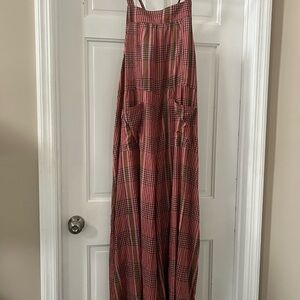 NWT Fun flowy overalls. Big pockets in the front and back adjustable fit and length with ties in the back. Muted pink and green 100% cotton, lightweight and soft. 57 inches L, 26.5 inseam.