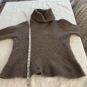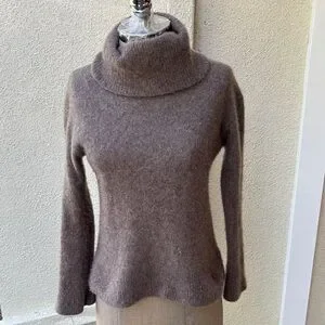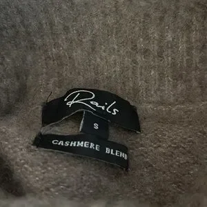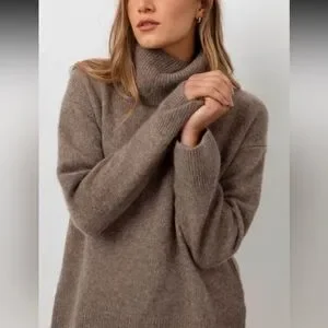 Rails cashmere & silk blend beautiful cozy, soft turtleneck sweater. Beautiful brownish color. Well loved and enjoyed with great life left to it. Stay warm and stylish, Perfect for any occasion. First two pix are stock photos. See pix of measurements
