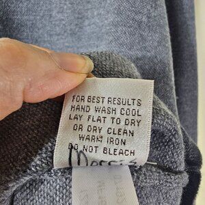 Soft and stylish crewneck sweater crafted from Italian extrafine merino wool, offering comfort and durability. Features brown elbow patches for added detail.