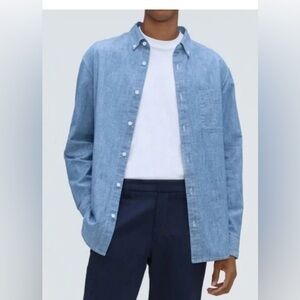 Organic cotton denim shirt by J. Crew. Ideal for versatile styling.