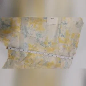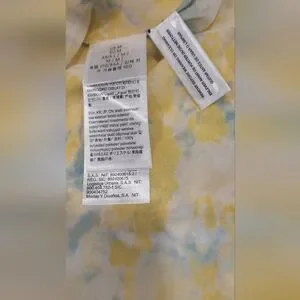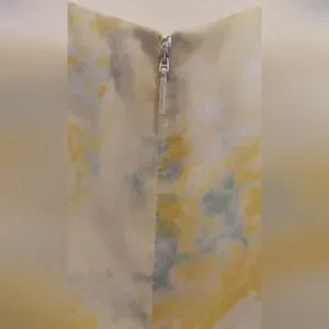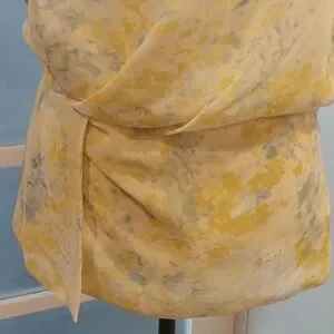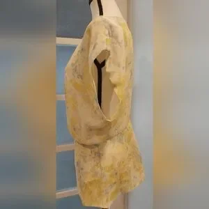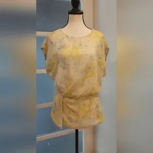 Elegant blouse with a soft yellow and gray pattern. Ideal for a sophisticated look.