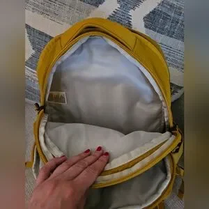 Explore with confidence using The North Face yellow backpack. Durable and stylish, perfect for work or travel!