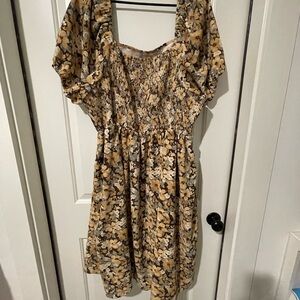 LENA AND LOU Brown Multi Color Floral Corduroy Dress with Pockets Size 3X