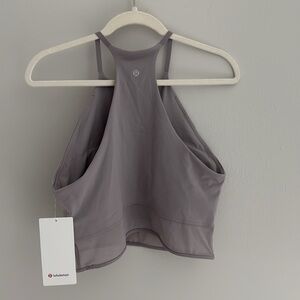 1. Forward fold with abandon. This mesh-hem yoga tank keeps you covered with a high neck and back, and has a built-in shelf bra for support